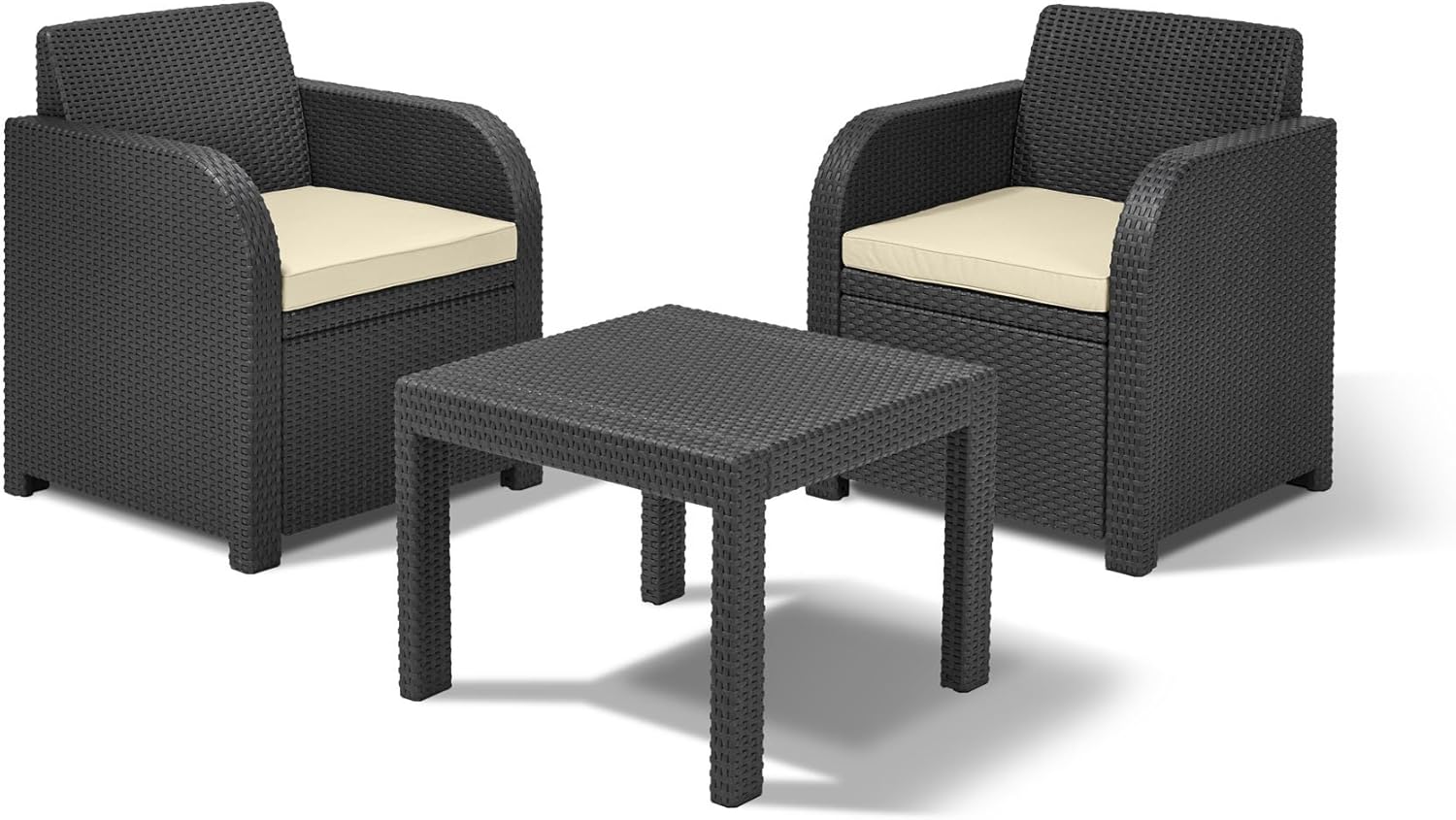 Allibert By Keter Atlanta 2 Seater Rattan Balcony Bistro Set