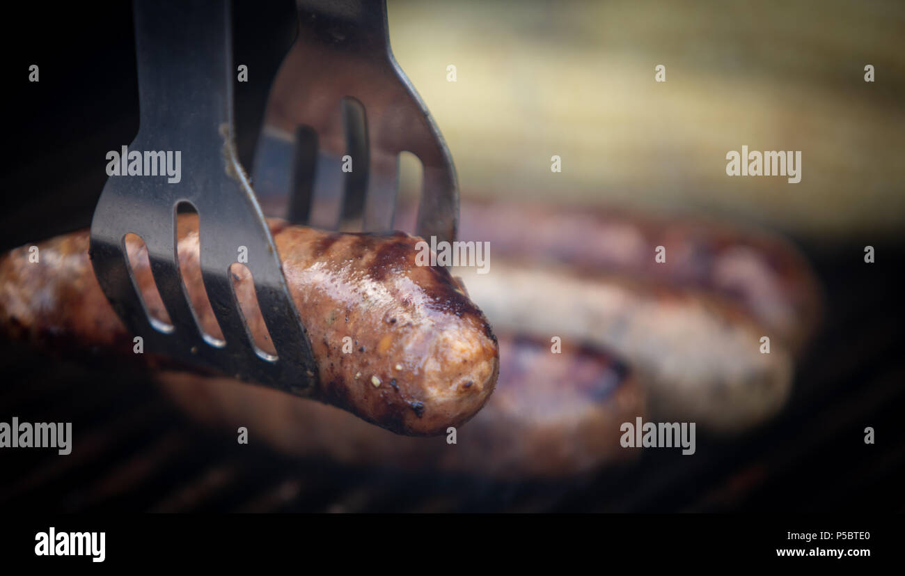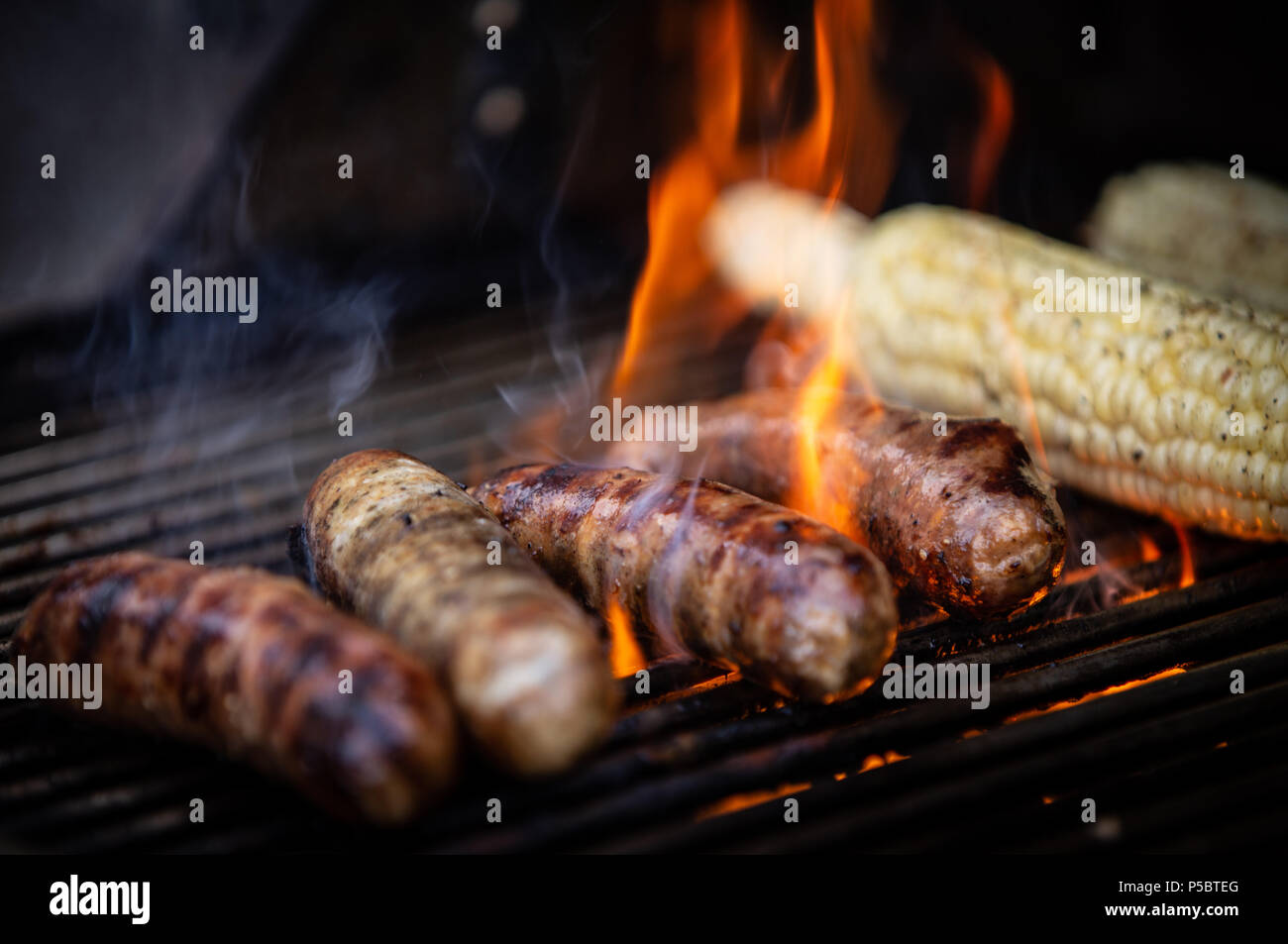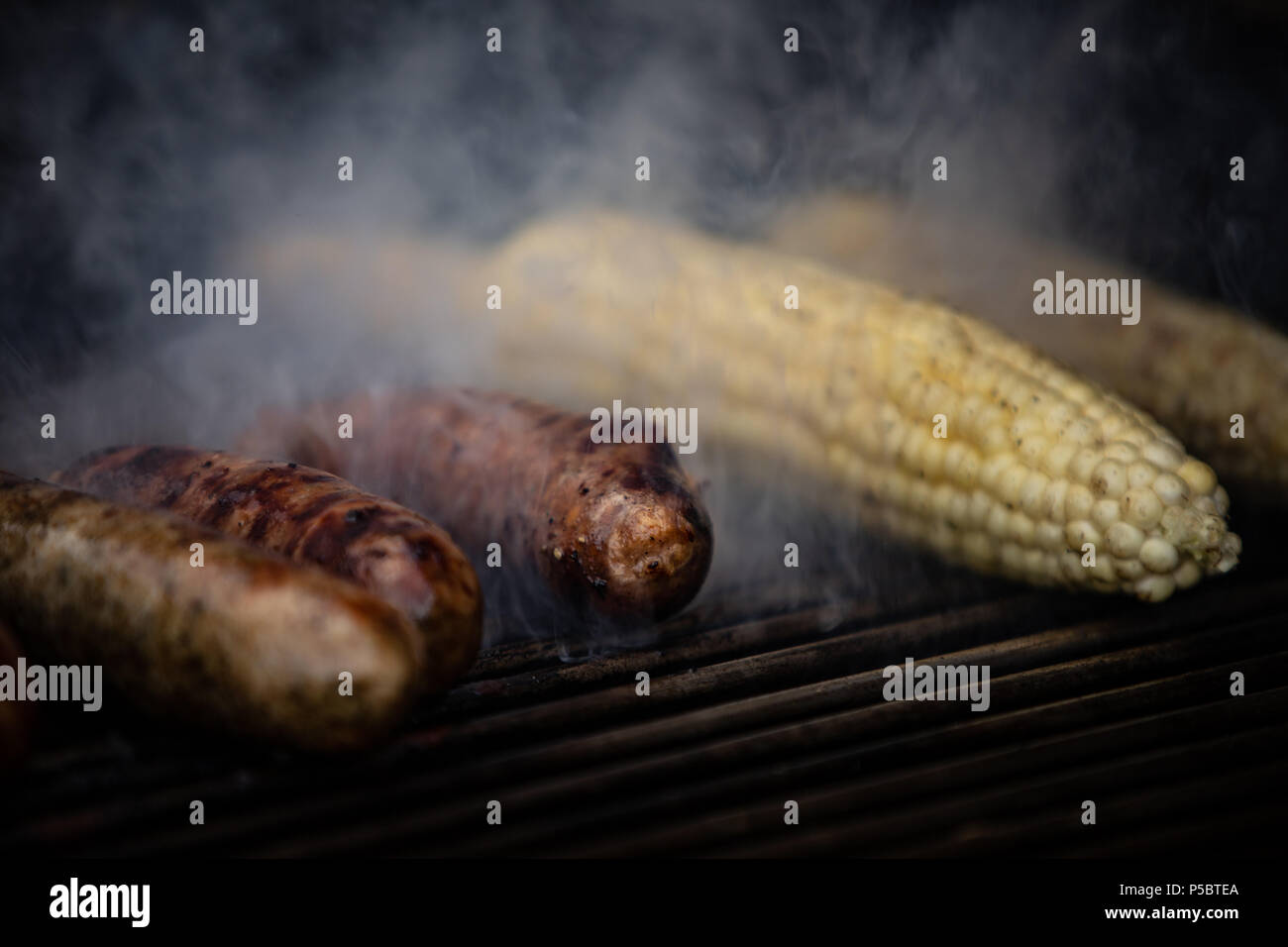 American Backyard Bbq With Sausages And Corn Stock Photo Alamy