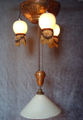 Grosse Antike Jugendstil Deckenlampe Aus Kupfer Opalglas Bei