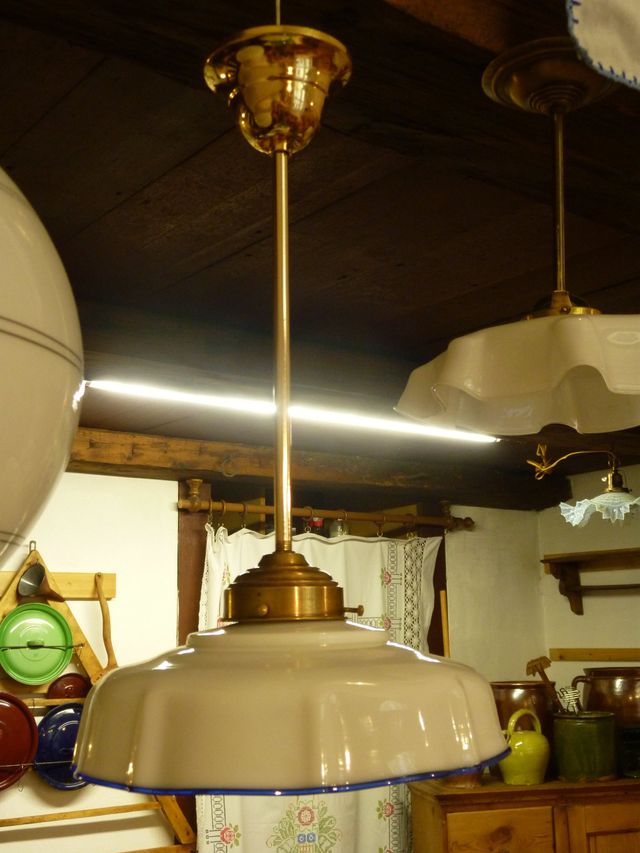 Antik Messing Lampe Leuchte Emaillelampe Deckenlampe Hangelampe
