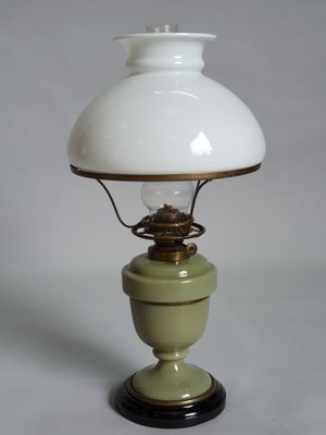 Petroleumstil Tischlampe Aus Messing Und Holz