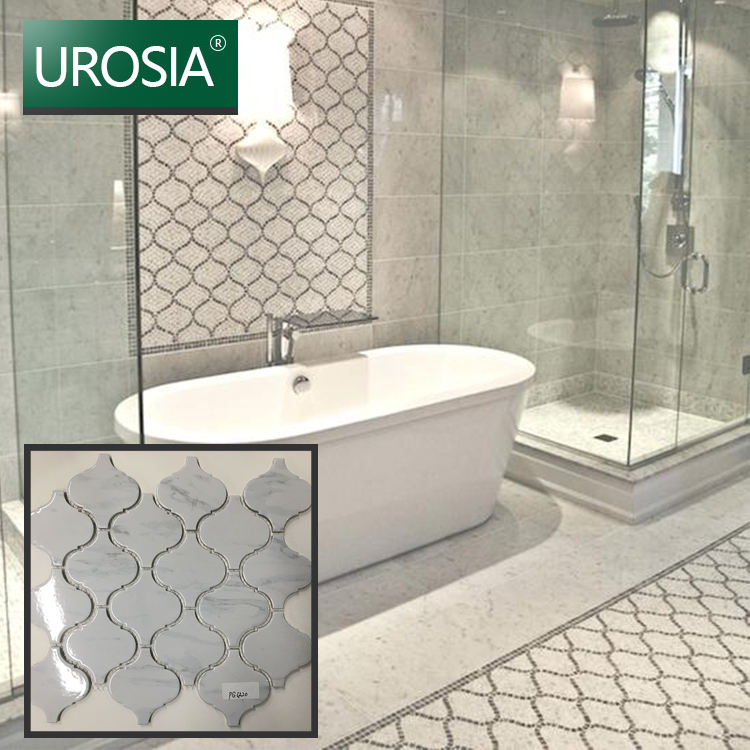White Arabesque Waterjet Marble Shower Floor Mosaic Tiles