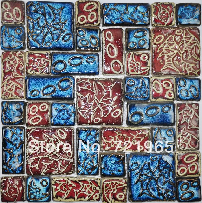 Hand Craft Red Porcelain Mosaic Tiles Backsplash Kitchen Wall Tile