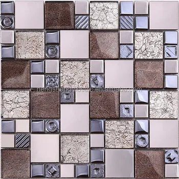 Gold Glass Mosaic Tile Backsplash Stainless Steel Metal Crystal Tile