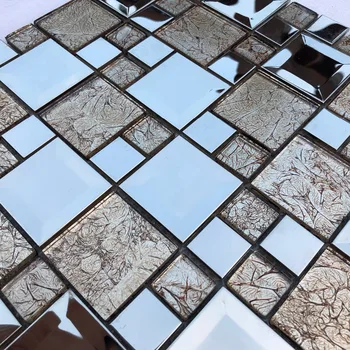 Flat Simple Silver Metal Light Coffee Glass Mosaic Tile Kitchen
