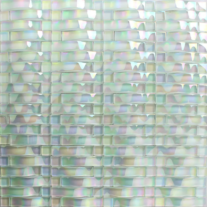 3d Pearl White Iridescent Crystal Glass Mosaic Tile For Kitchen