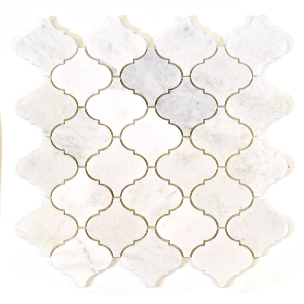 Modamo Arabesque White Marble Polished Mosaic The Home Depot Canada