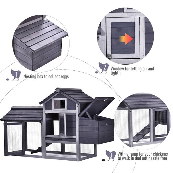 Pawhut Wooden 77 In Backyard Chicken Coop Kit With Nesting Box
