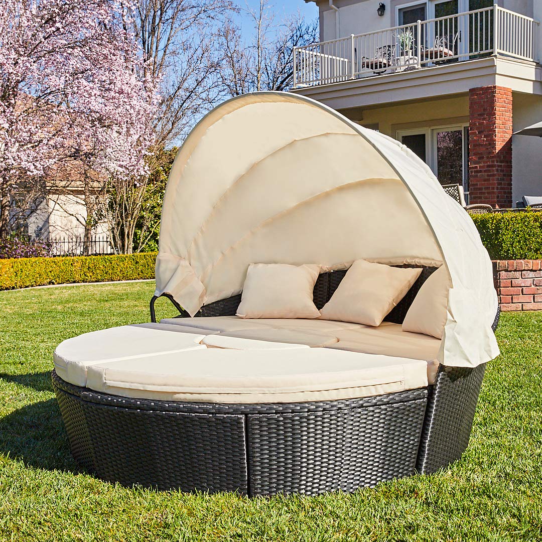 M W Patio Furniture Round Outdoor Daybed With Retractable Canopy