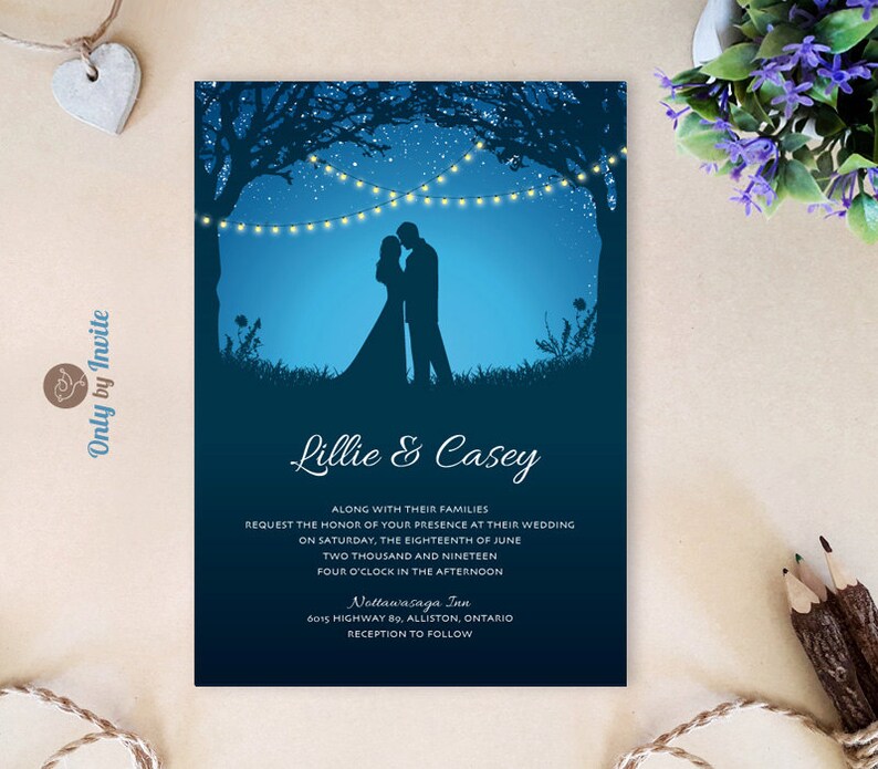 Printed String Lights Wedding Invitations Romantic Wedding Etsy