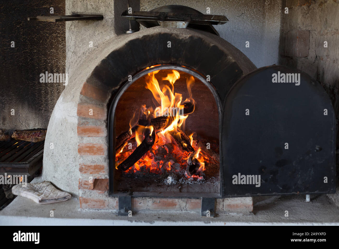 The Fire Burns In A Wood Pizza Oven Stock Photo Alamy