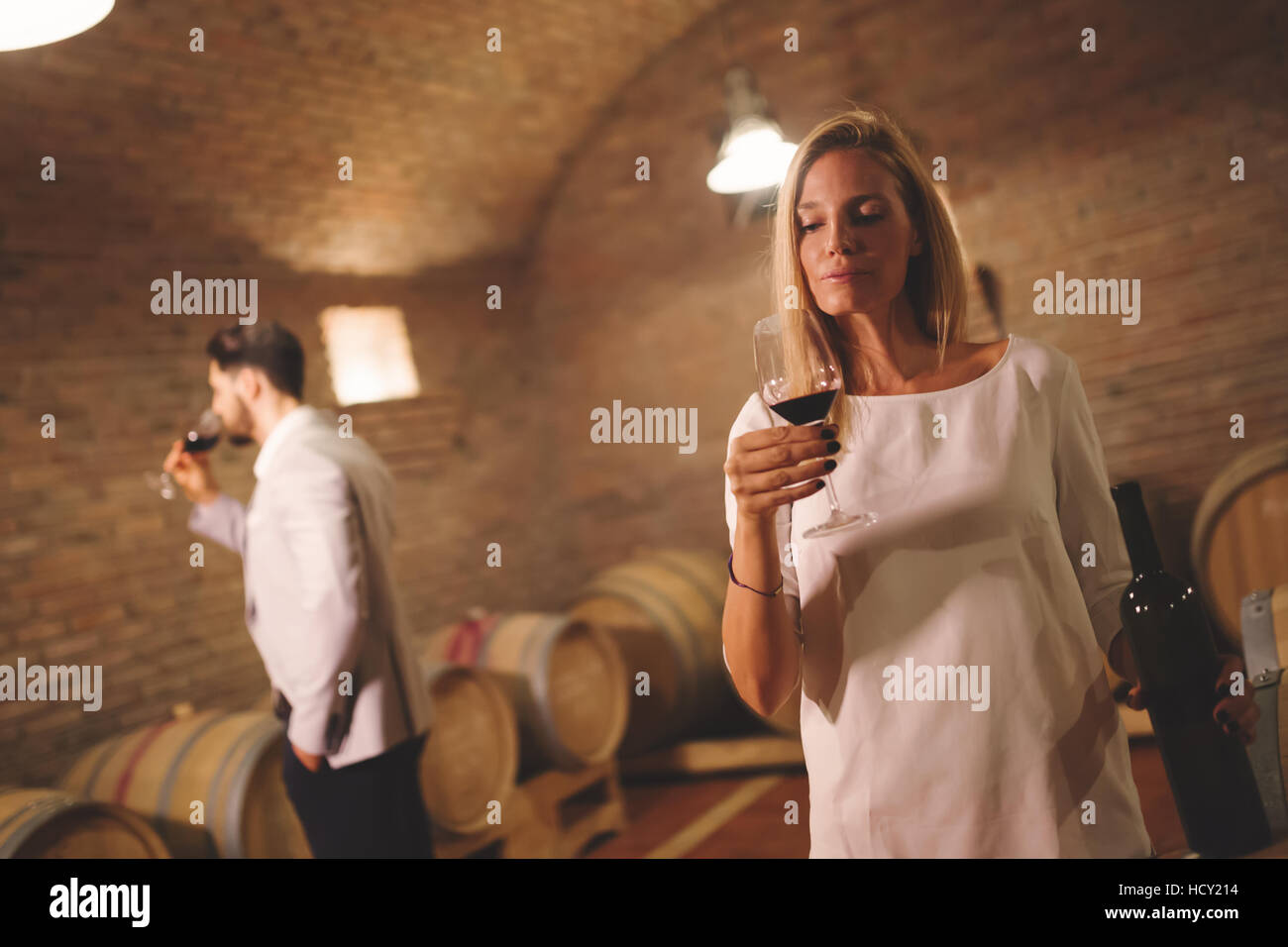 People Tasting Red Wine In Winery Basement Stock Photo Download