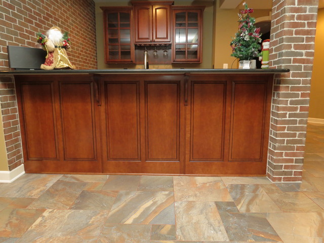Basement Remodel With New Bar And Ceramic Tile Floor Traditional