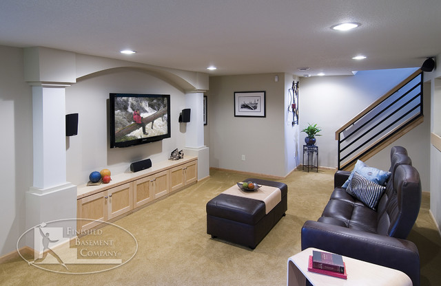 Basement Tv Wall Traditional Basement Minneapolis By Fbc Remodel
