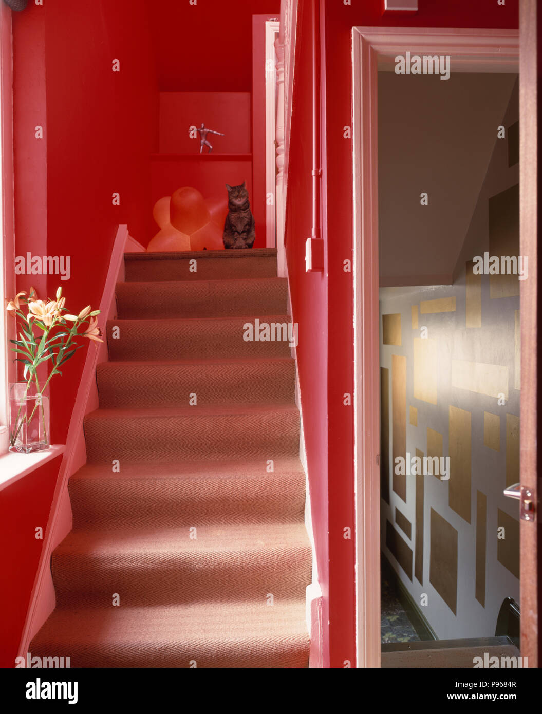 Beige Carpet On Staircase In Bright Pink Hall Stock Photo Alamy