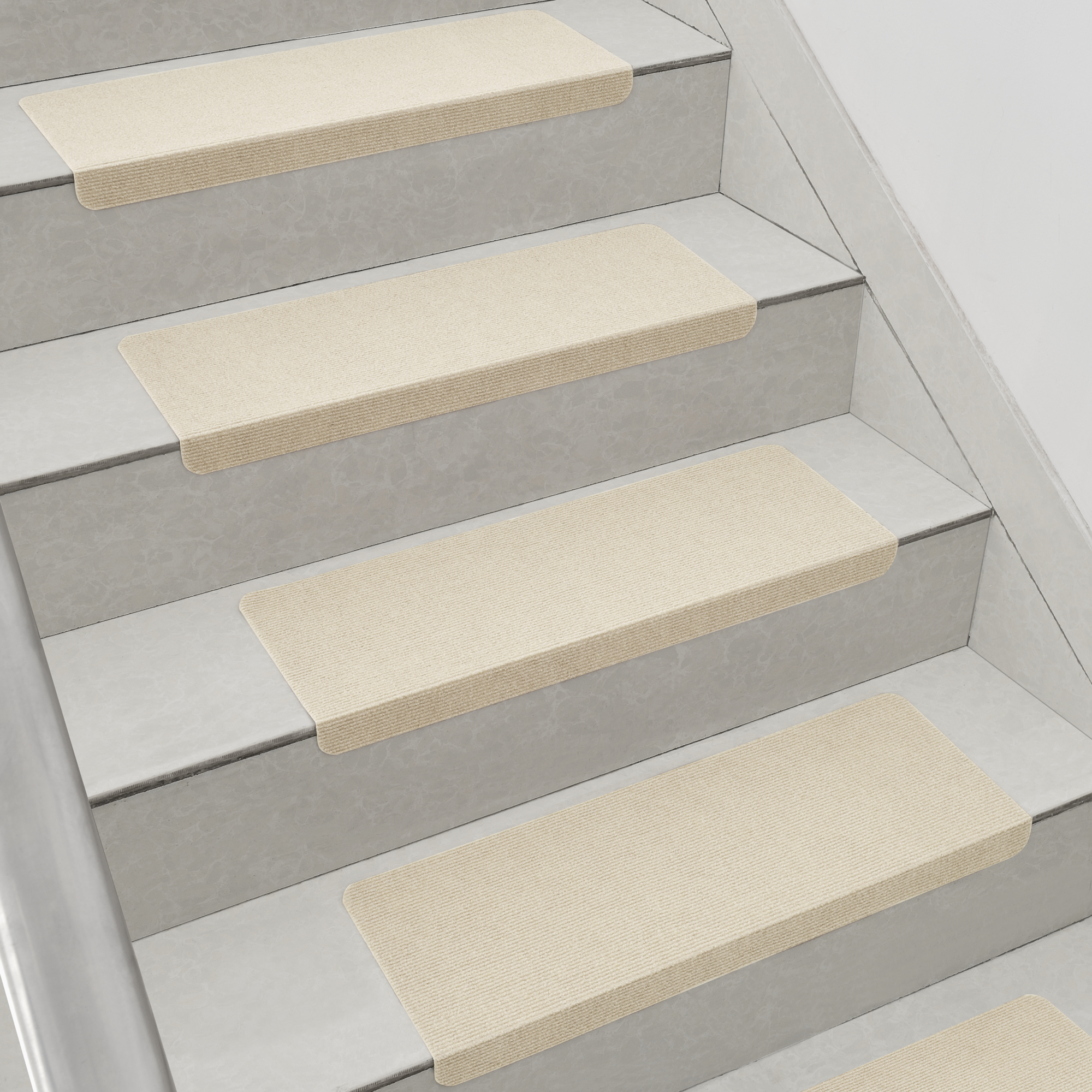 Set Of 15 Adhesive Carpet Stair Treads Pebble Beige 8 In X