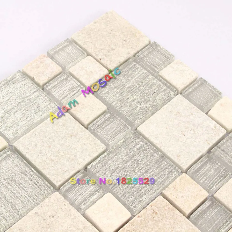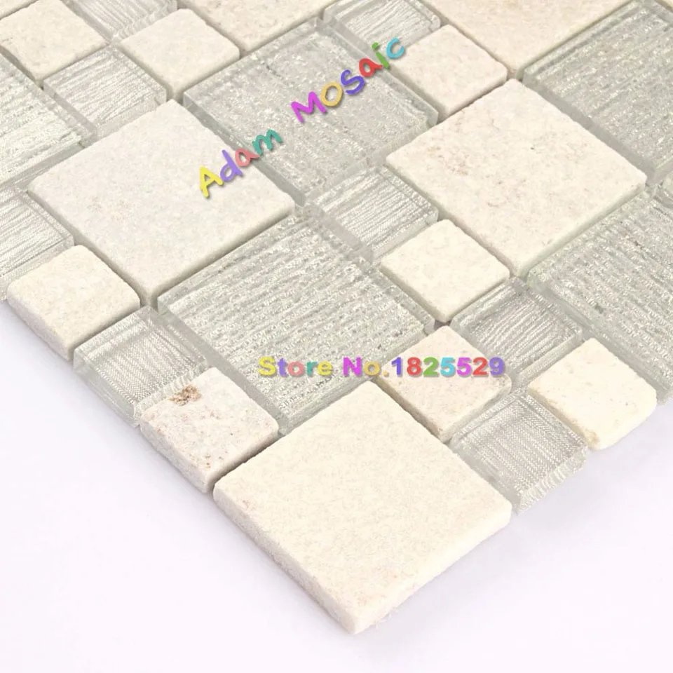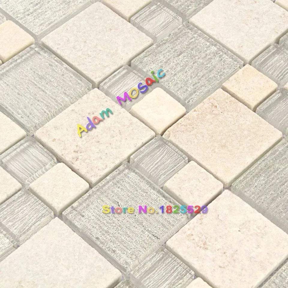 Stone Tile White Glass Mosaic Tiles Backsplash Kitchen Beige Wall