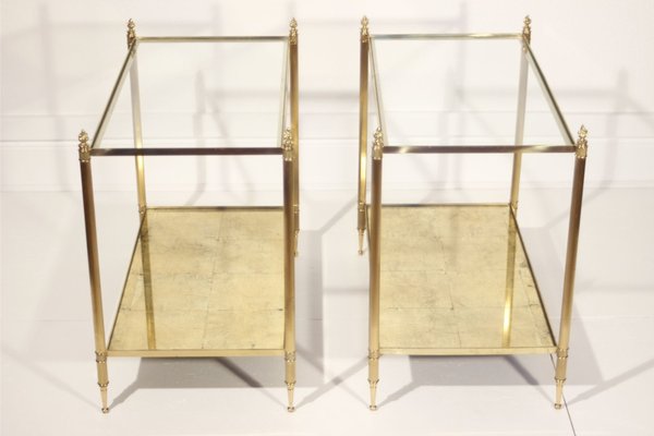Franzosische Mid Century Beistelltische Aus Messing 1950er 2er