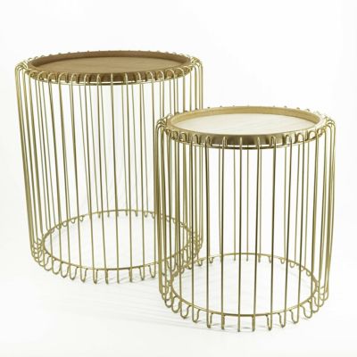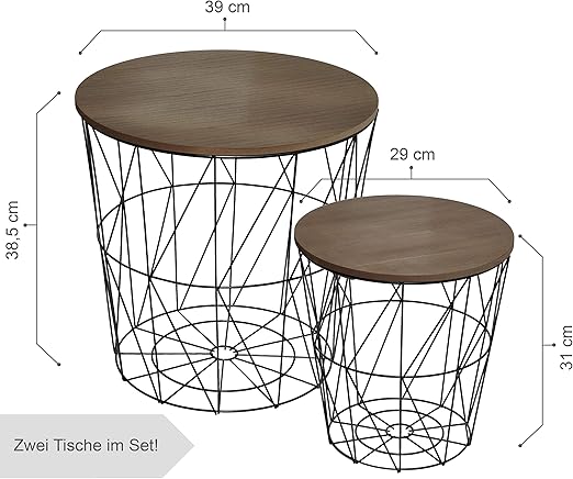 Calutea Moderne Beistelltische Rund 2er Set Drahtkorb Metall