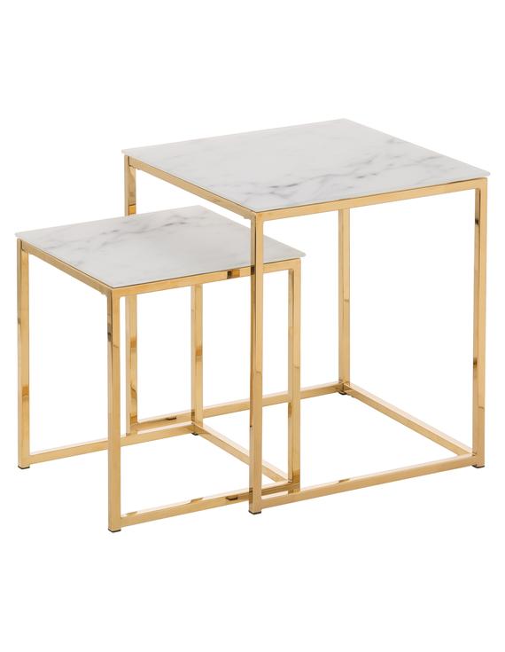 Beistelltische 2er Set Metall Marmor 45 38 60 Cm Beistelltische