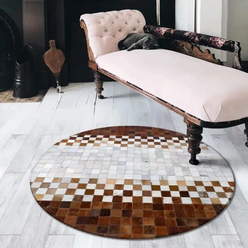 American Style Luxury Natural Brown Color Cowhide Patchwork Rug