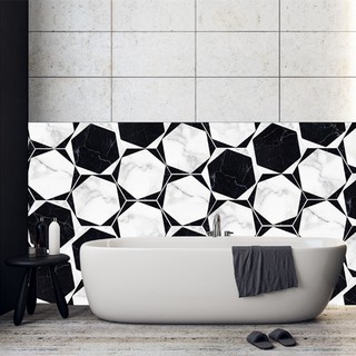 1 Set 10 Pcs Black And White Marble Look Style Hexagon Wall Floor