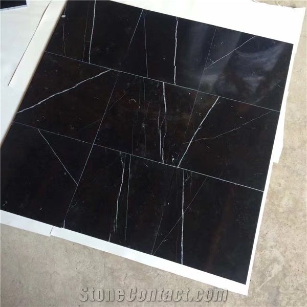 China Black With White Vein Marble Flooring Tiles Nero Marquina