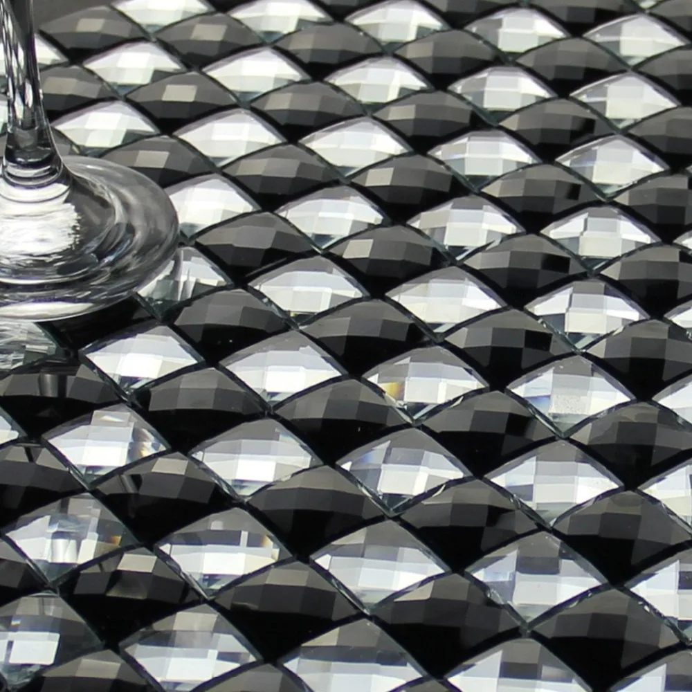 20mm Black White 13 Facets Beveled Diamond Mirror Glass Mosaic