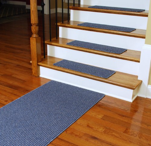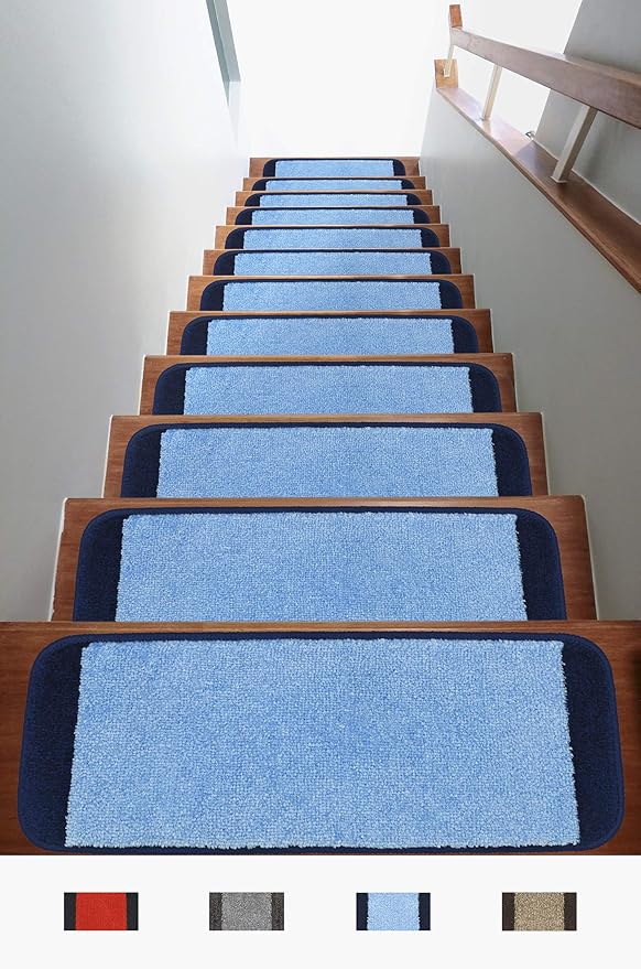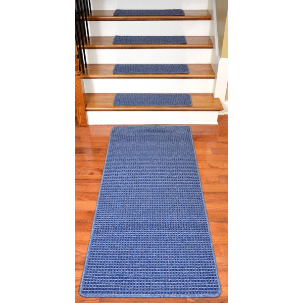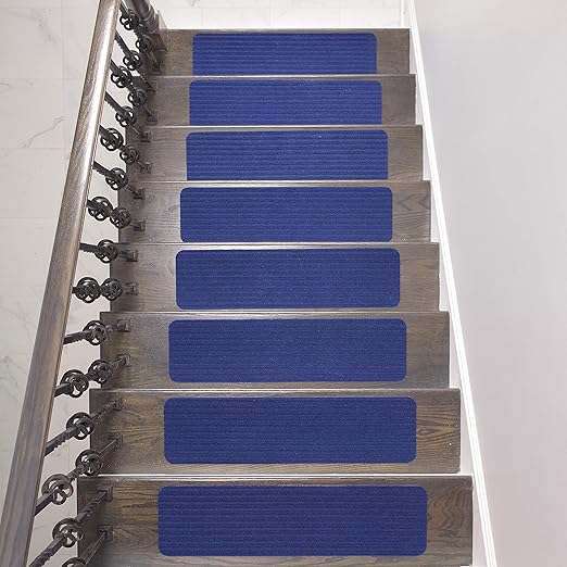 Blue Stair Tread Set Of 13 Pcs 26in X 9in With Non Slip Pads