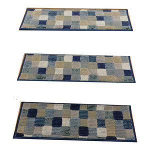 Set Of 13 Blue Traditional Non Slip Carpet Stair Treads 26 X 9