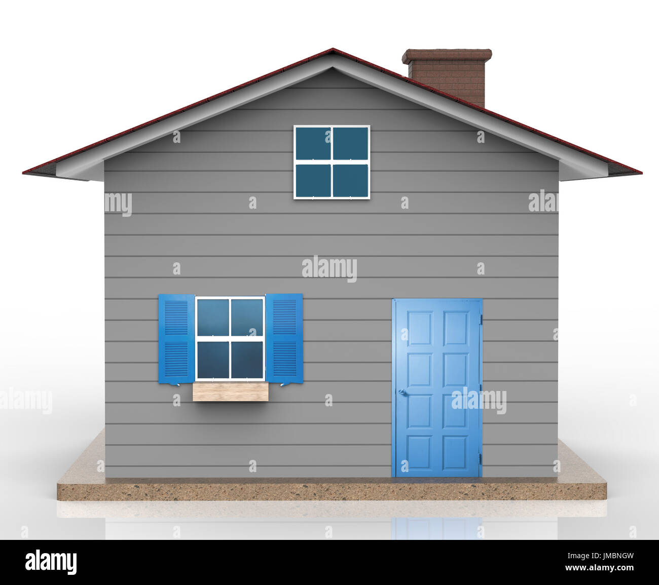 3d Rendering Grey House Model With Blue Window And Blue Door Stock