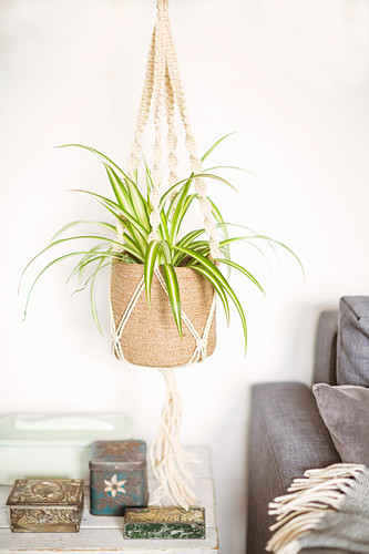 Makramee Blumenampel Mit Grunlilie Bild Kaufen 12472008