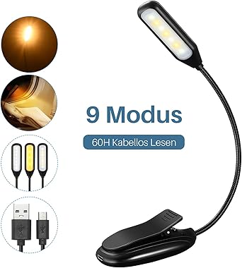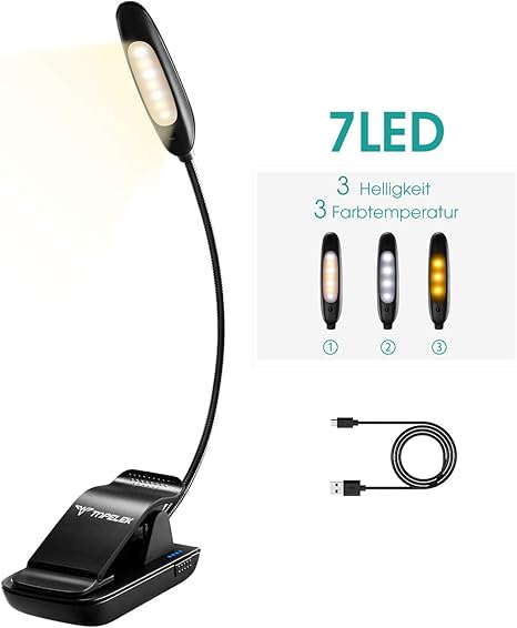 Topelek Led Leselampe Buchlampe Klemmleuchte 3 Helligkeitsmodi Usb