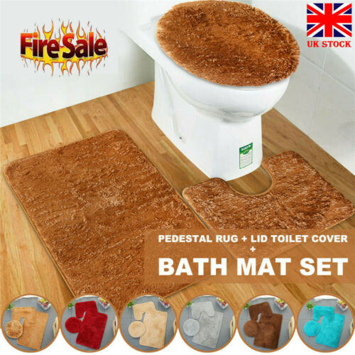 Buy 3pcs Non Slip Soft Bath Pedestal Mat Toilet Lid Carpet