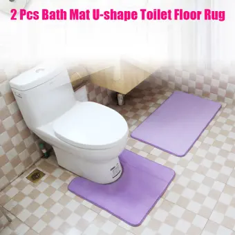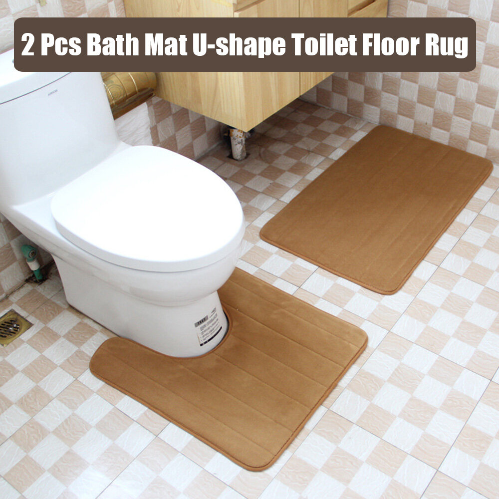 2 Pcs Simple Bathroom Mat Set U Shape Bathroom Carpet Toilet Rugs
