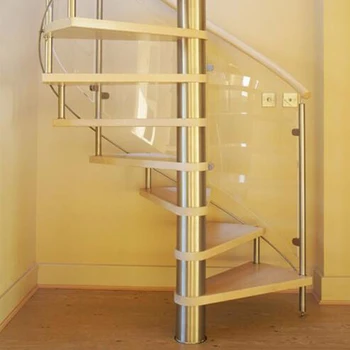 Stainless Steel Center Pole Spiral Stairs Glass Balustrade Spiral