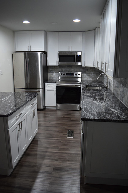 White Shaker Kitchen With New Dark Grey Laminate Flooring Fusion