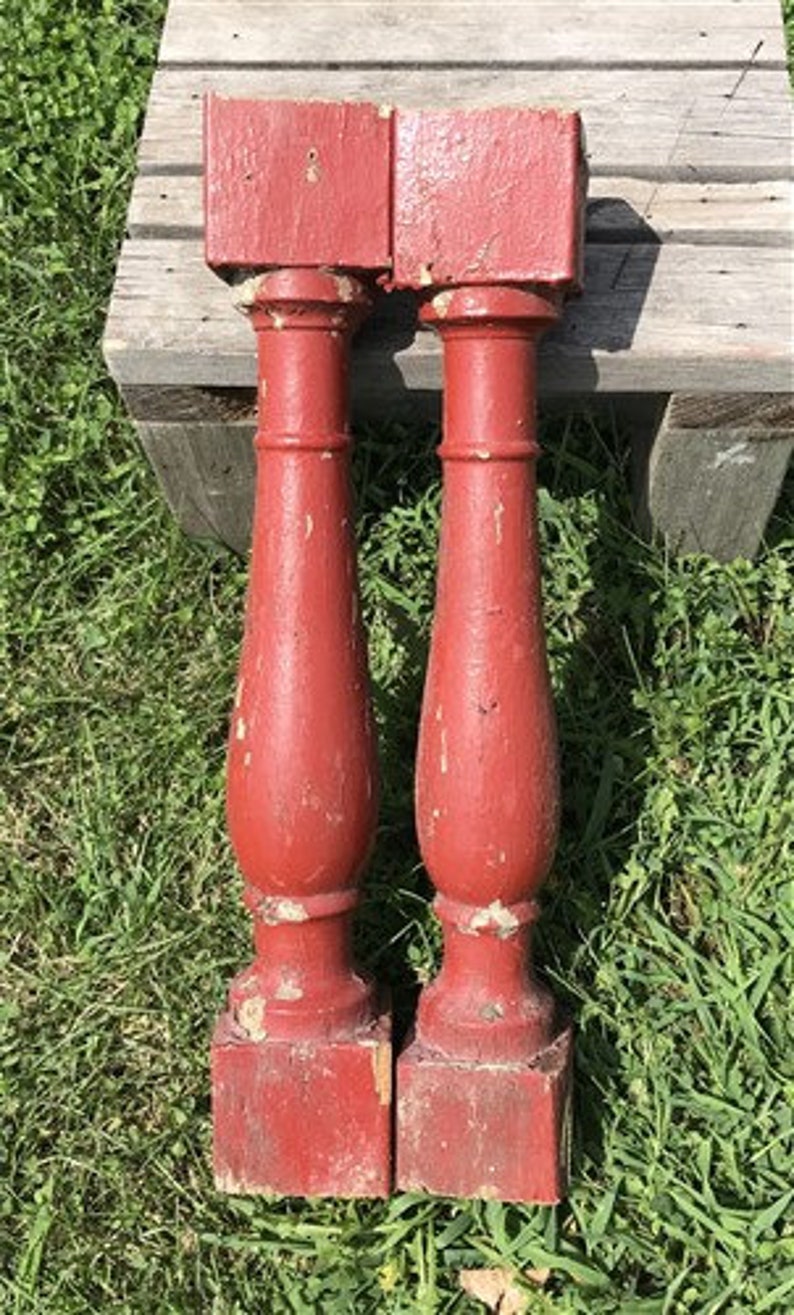 Pair Antique Wood Balusters Architectural Salvage Chunky Spindles