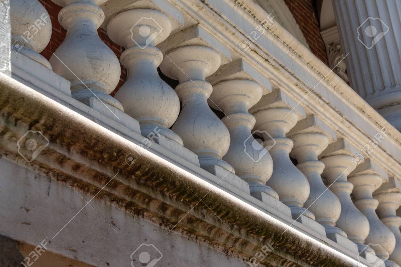 Chunky Balusters On An Exterior Porch With Stains And Mold