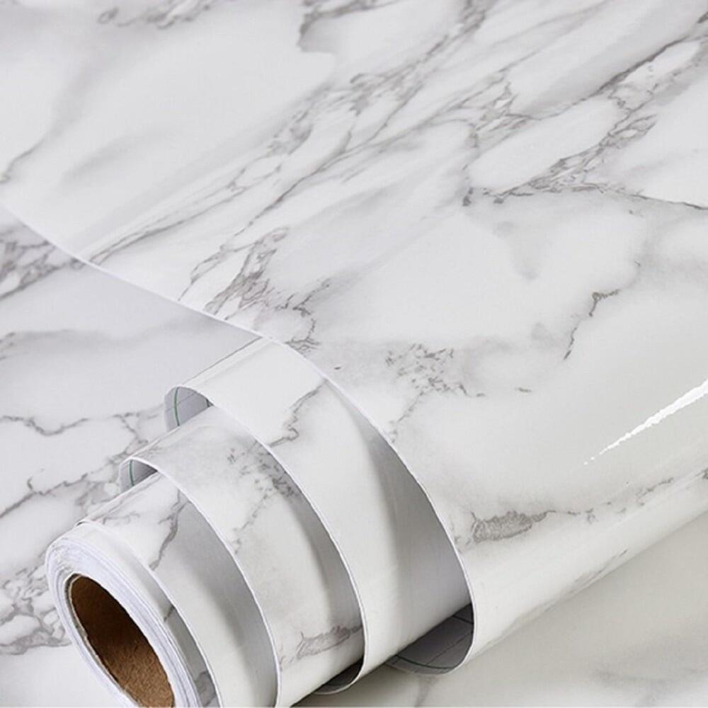 Marble Stick On Wallpaper Vinyl Film Overlay Kitchen Backsplash