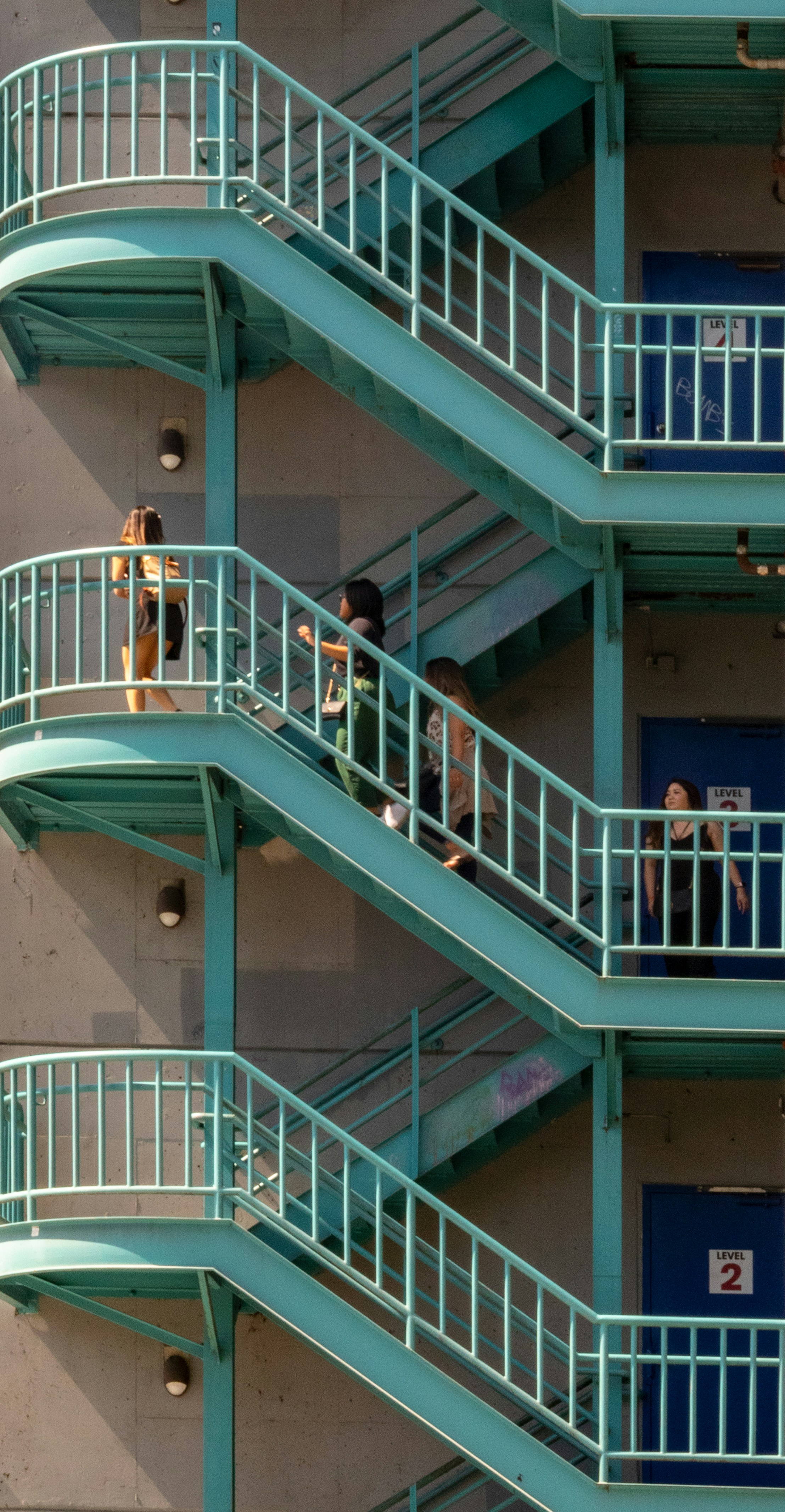 The principal function of the railings is to offer safety and prevent people from falling off the surfaces of the stairways.