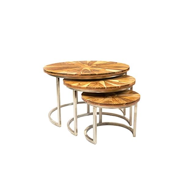 Maades Wohnzimmertisch 3er Set Couchtisch Rund Modern Aus Teakholz