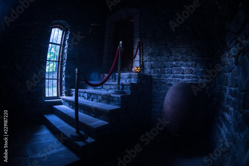 Old Creepy Abandoned Mansion Staircase Colonnade Dark Castle