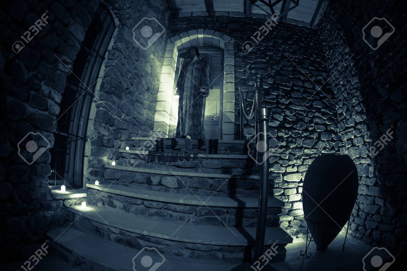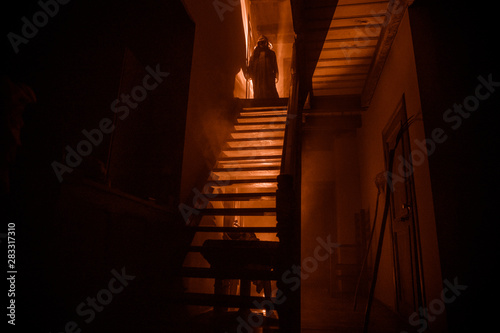 Inside Of Old Creepy Abandoned Mansion Silhouette Of Horror