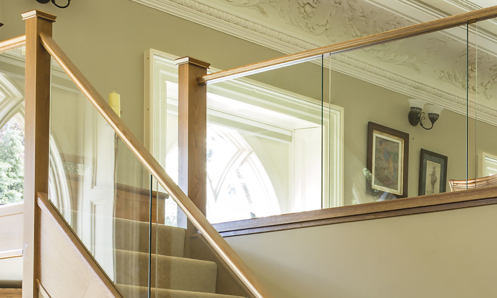 Dark Oak In Line Glass Staircase Traditional Staircase