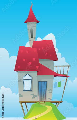 Digital Vector Fairytale And Fantasy Castle With Red Roof Built