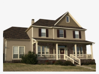 The Facade Of A Beautiful White Two Story Cottage With A Red Roof