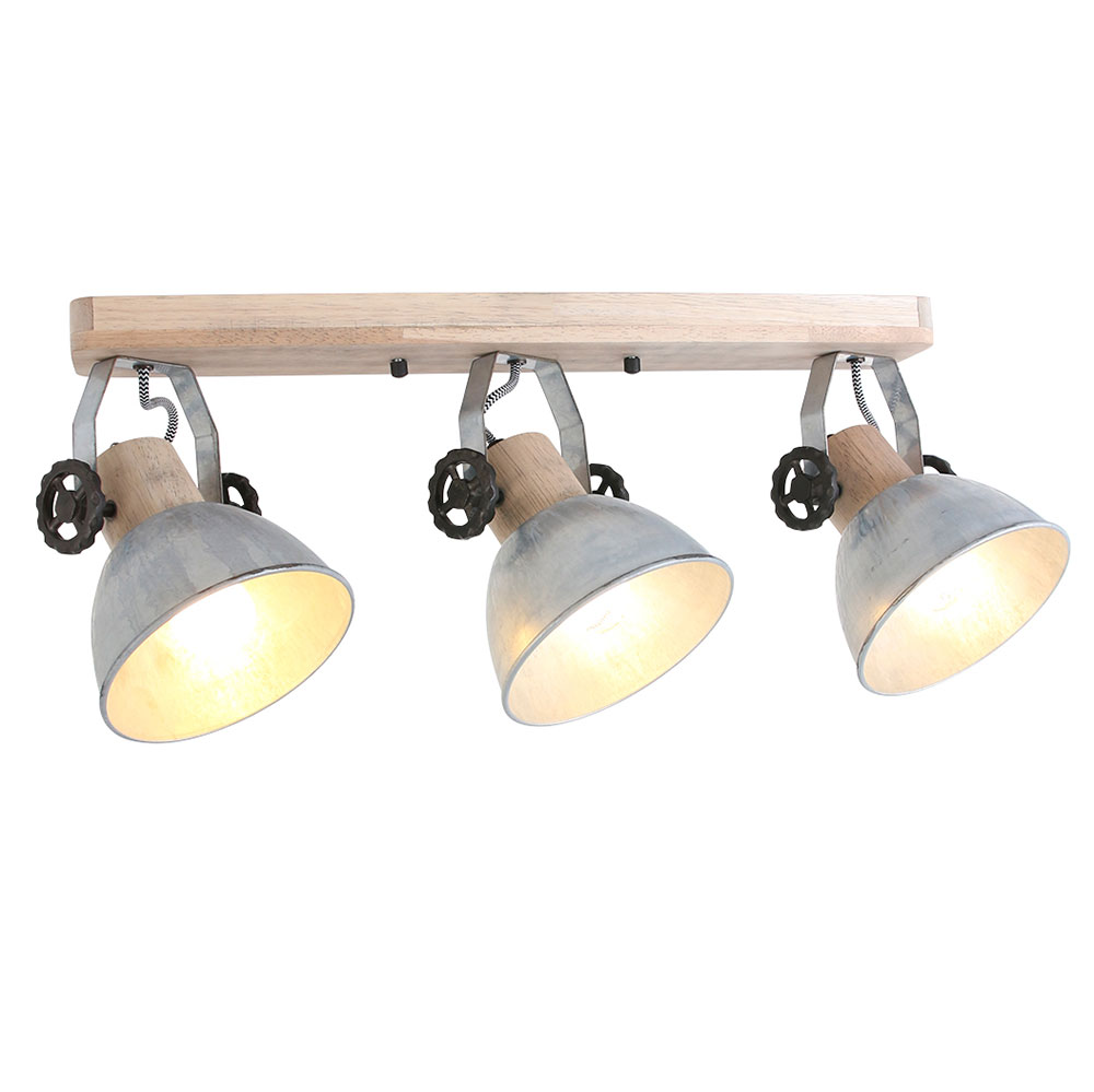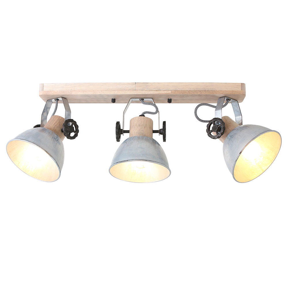 Retro Holz Deckenstrahler Mit Drei Schwenkbaren Spots Antik Look