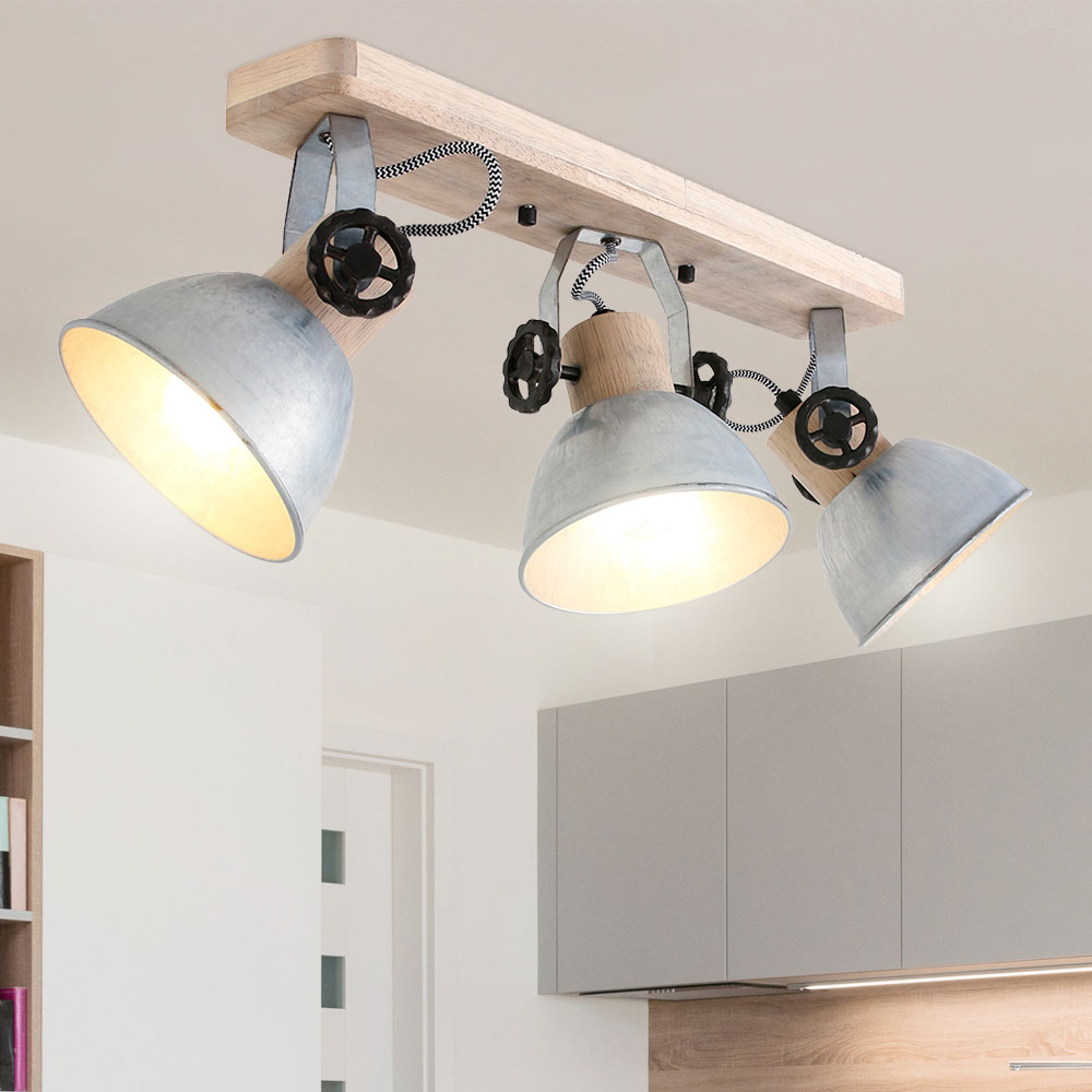 Deckenstrahler Vintage Industrie Style 3 Flammig Metall Und Holz