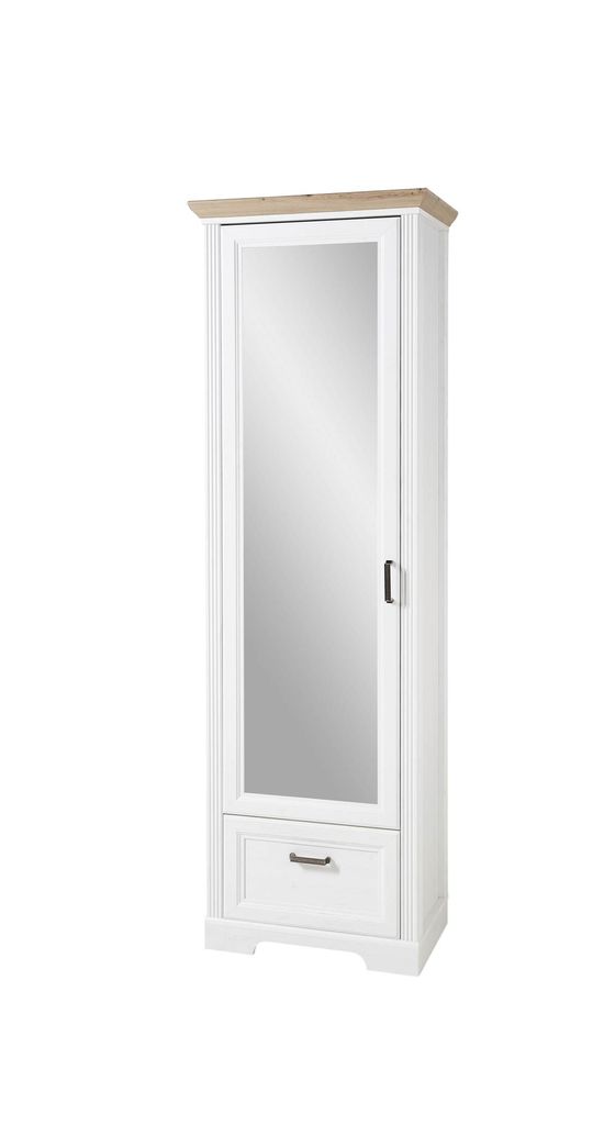 Dielenschrank 1 Turig Spiegel Massivholz Weiss Landhausstil